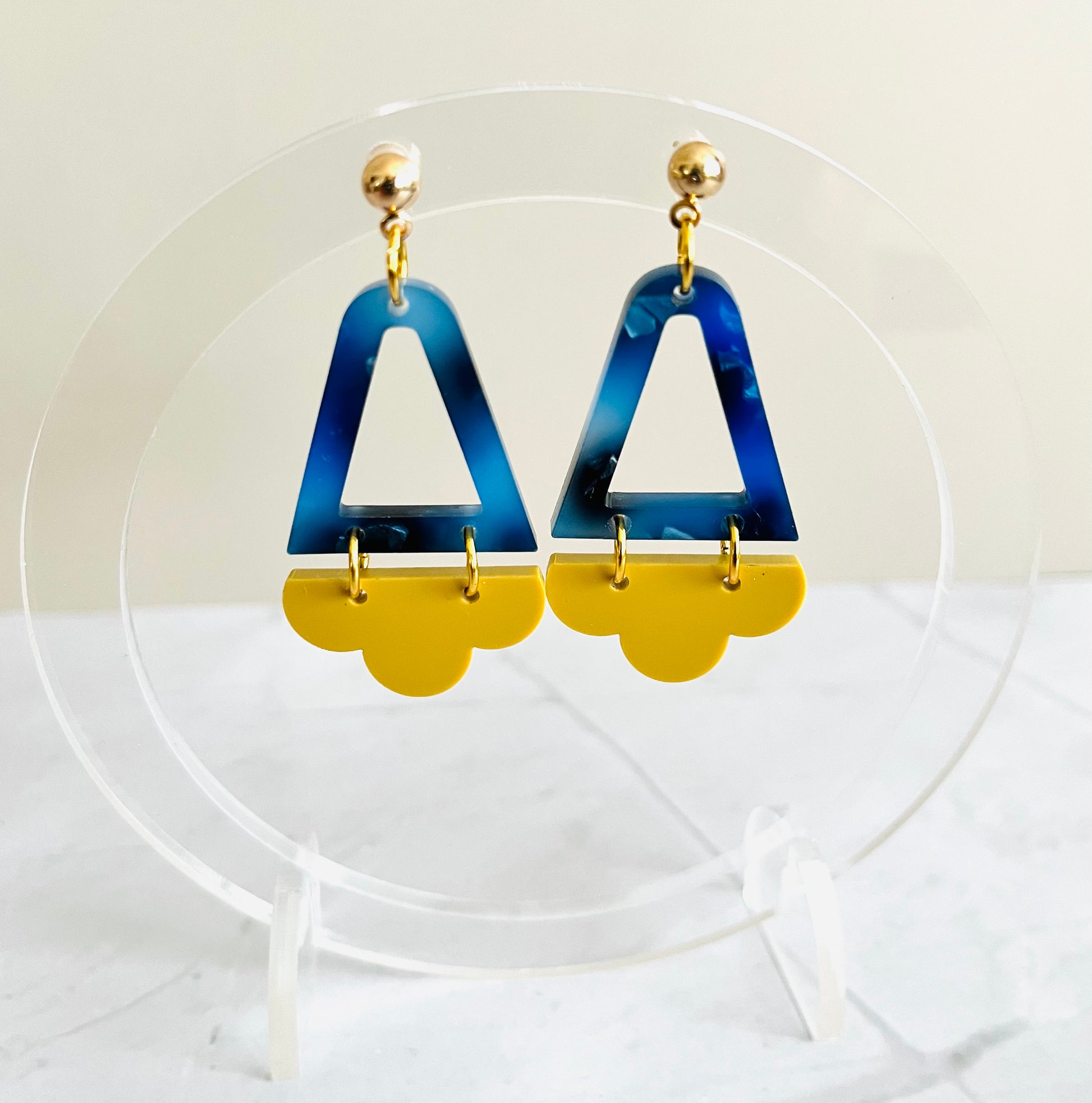 Playful yet chic, these earrings feature a unique scalloped edge in a vibrant two-tone design. The gold-plated ear piece adds a polished finish, making them perfect for adding a pop of personality to any outfit.